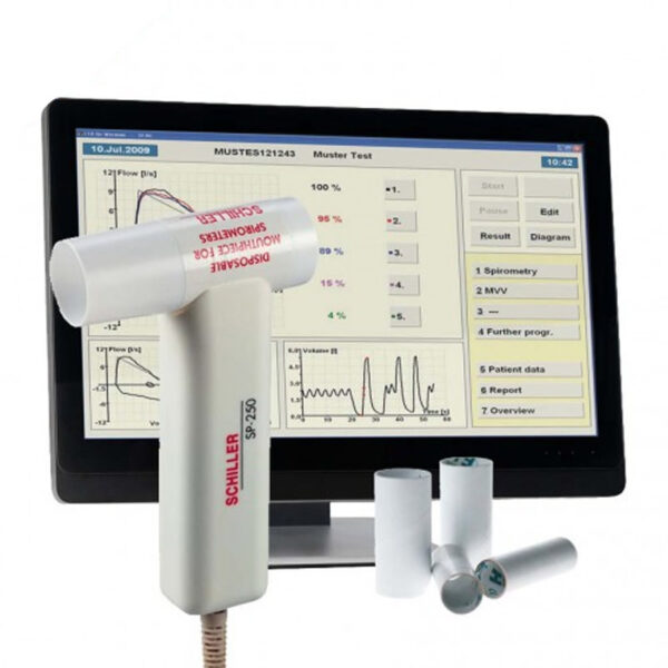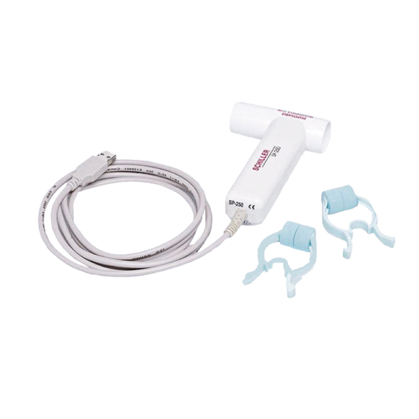 The Schiller SP-250 Â hardware and software comprise spirometry, flow/volume measurement, direct and indirect maximum voluntary ventilation MVV, patient data administration, programs for provocation and bronchospasmolysis, pre/post comparisons, functions for trend, statistics, and protocol, as well as interfaces and much more. Buy your PC Spirometry Sensor SP-250 today at Royal Medical Devices.